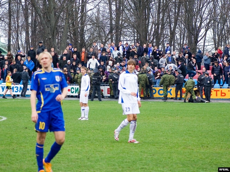 12 красавіка ў Смаргоні падчас гульні другога туру чэмпіянату Беларусі па футболе “Смаргонь” – “Дынама Менск” адбыліся сутычкі мясцовай міліцыі зь менскімі фанатамі.