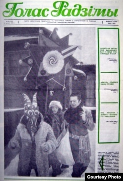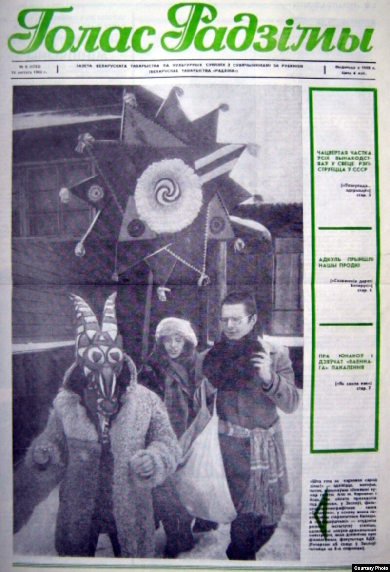 Нумар “Голасу Радзімы”, прысьвечаны майстроўскім Калядам у Заслаўі, 1982 год. На здымку Сяржук Цімохаў у ролі Казы, Арына і Вінцук Вячоркі.