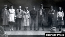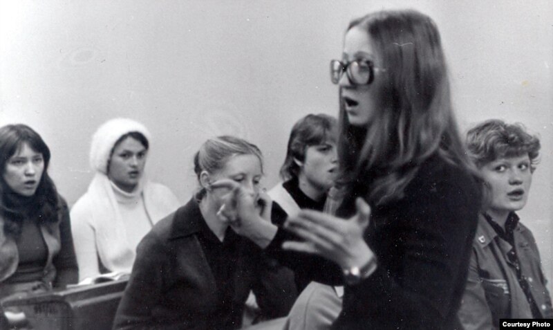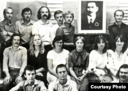 Майстроўня на філфаку БДУ. 1981-82 год. Вінцук праводзіць лекцыю з польскай мовы і тлумачыць, што такое "jeleń“ (алень).