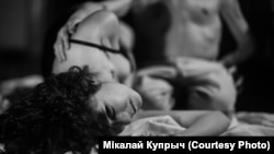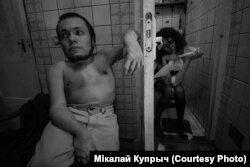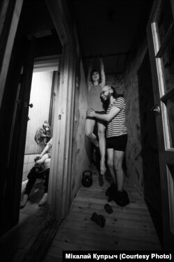 Няёмкія моманты былі: напрыклад, я баялася легчы Віцю на калені. Я важу 50 кіляграмаў — баялася яму нешта паламаць. Часу на тое, каб звыкнуцца, было мала, гэта ж незнаёмае цела — ня так проста, каб атрымалася жывое. Далей мы стараліся фатаграфаваць жывыя моманты, перасоўваньні, любыя прапановы, і проста калі людзі камунікавалі паміж сабой.