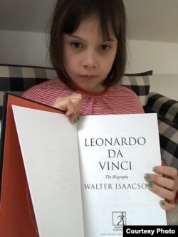 Біяграфію Леанарда да Вінчы майго былога шэфа Ўолтэра Айзэксана. Гэты том ляжаў на тумбачцы каля ложка, калі раніцай да мяне прыйшла 7-гадовая ўнучка, глянула і сказала — «А, Леанарда, нам у школе расказвалі, ягоная Мона Ліза глядзіць на цябе, куды б ні пайшоў» (школа ў Баварыі).