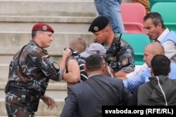 У Менску на стадыёне «Дынама» падчас стартавага матчу новага эўрапейскага каманднага турніру Ліга Нацый паміж зборнымі Беларусі і Сан-Марына адбыліся затрыманьні.