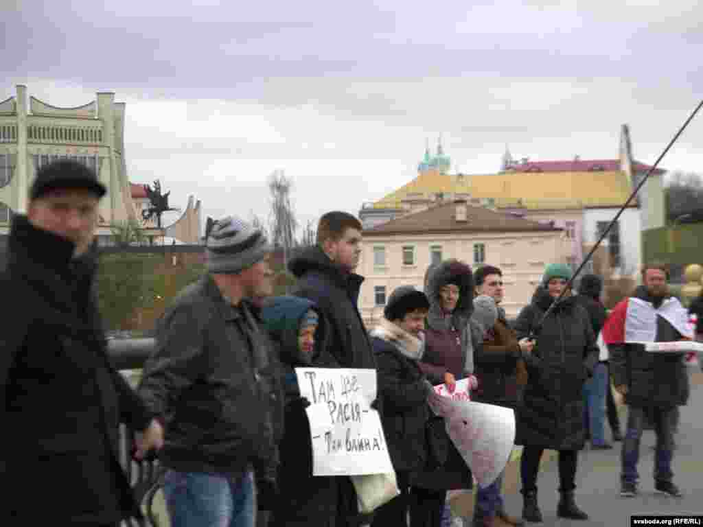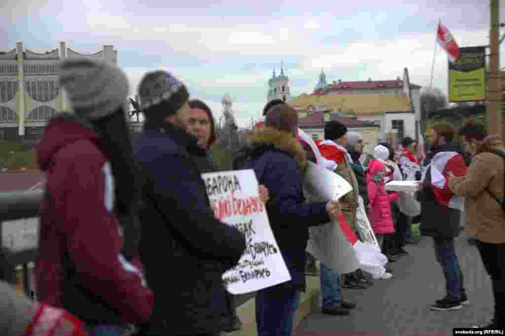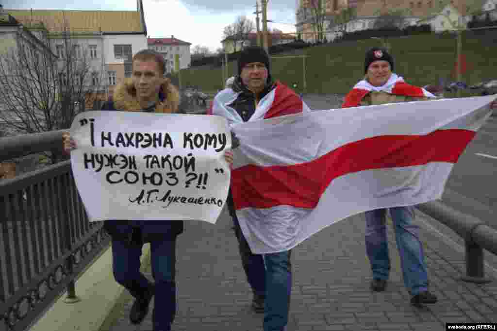 Акцыя за незалежнасьць Беларусі ў Горадні 15 сьнежня сабрала каля сотні чалавек. Падчас акцыі ўдзельнікі спусьцілі на Нёман плыт з пенаплясту для Лукашэнкі і Пуціна, дзе выказалі свой пратэст супраць інтэграцыі з Расеяй.