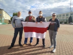 У Грушаўцы людзі таксама выйшлі на акцыю салідарнасьці на знак нязгоды з адмовай ЦВК зарэгістраваць Віктара Бабарыку і Валера Цапкалу.