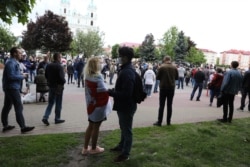 Жыхары Горадні 29 траўня выстраіліся ў чаргу, каб пакінуць подпіс за Сьвятлану Ціханоўскую, якая вылучаецца кандыдатам на прэзыдэнта.