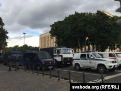 Каля цырку з абодвух бакоў, на скрыжаваньні з вуліцай Янкі Купалы, стаіць ачапленьне: 11 міліцыянтаў з аднаго боку і 9 — з другога боку вуліцы. Але людзей пакуль прапускаюць.