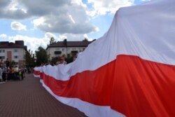 Удзельнікі шматтысячнага мітынгу каля стэлы «Менск — горад-герой» падтрымалі патрабаваньне каардынатаркі аб’яднанага штабу Марыі Калесьнікавай аб адстаўцы Аляксандра Лукашэнкі.
