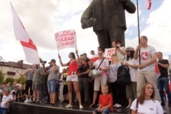 На помніку Леніну зьявіліся розныя плякаты, у тым ліку «Ціханоўская наш прэзыдэнт». Людзі скандуюць «Трыбунал!», «Сыходзь!», «Звольнены!», «Свабоду палітвязьням!».