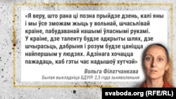 Вольга Філатчанкава: «Веру што мы будзем жыць у вольнай краіне, пабудаванай нашымі рукамі»