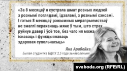 «За 8 месяцаў я сустрэла шмат розных людзей з рознымі поглядамі, ідэаламі, з рознымі сэнсамі. І гэтыя 8 месяцаў рэжымных мерапрыемстваў не змаглі пераканаць мяне ў тым, што страх руйнуе давер і ўсё тое, без чаго ня можа існаваць і функцыянаваць здаровая супольнасьць.