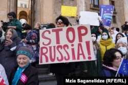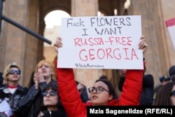 «Хто мы? — Грузінкі», «Чаго мы хочам? — Грузія — у Эўропу», — прагучала на мітынгу ў Тбілісі.