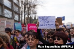 Удзельніцы шэсьця, прысьвечанага Міжнароднаму жаночаму дню, сёлета пратэстуюць супраць законапраекту «Аб празрыстасьці замежнага ўплыву», зацьверджанага напярэдадні парлямэнтам Грузіі ў першым чытаньні.