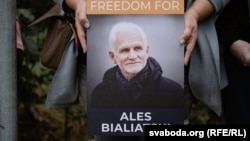 25 верасьня ў сталіцы Літвы Вільні прайшла акцыя салідарнасьці зь ляўрэатам Нобэлеўскай прэміі міру, палітзьняволеным беларускім праваабаронцам Алесем Бяляцкім, якому 25 верасьня споўнілася 62 гады.