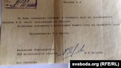 У архіўнай справе зьняволенага Мазаніка І.Д. месца пахаваньня не пазначана»