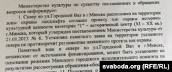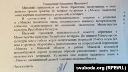 «Сутнасьць усіх адказаў зь Менгарвыканкаму — «немэтазгодна». Подпісы кіраўнікоў розныя: тагачасны старшыня Менгарвыканкаму Мікалай Ладуцька, намесьнік старшыні Ігар Карпенка, чыноўнікі «драбнейшага» ўзроўню — намесьніца начальніка ўпраўленьня культуры Віталіна Рудзікава, яе падначаленая Альхавікова.